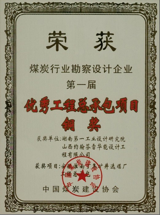 安徽淮南選煤廠總承包銅獎