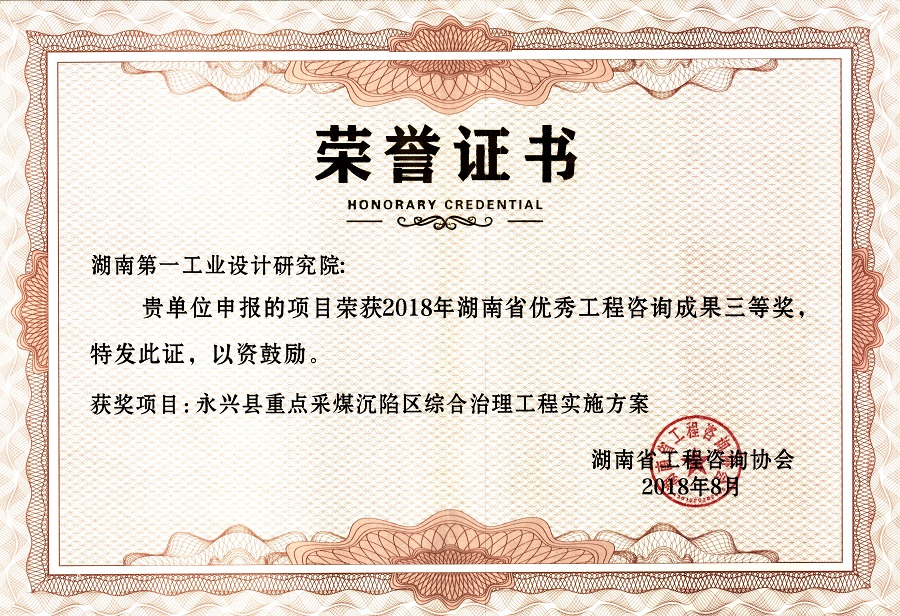 湖南省優秀設計表揚金獎(1984)